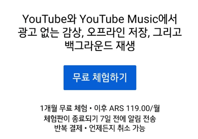 우리나라에서 유튜브 프리미엄에 가입하려면 무료체험기간이 끝난 후 우리나라 돈으로 매달 10450원을 지불해야 합니다. 누군가에겐 부담되는 가격일 수 있겠죠? 그렇다면 조금 더 저렴한 가격으로 이용할 수 있는 방법이 있습니다.